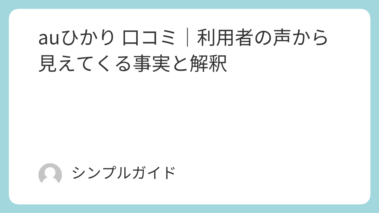 「auひかりが良い・悪い」ではなく、