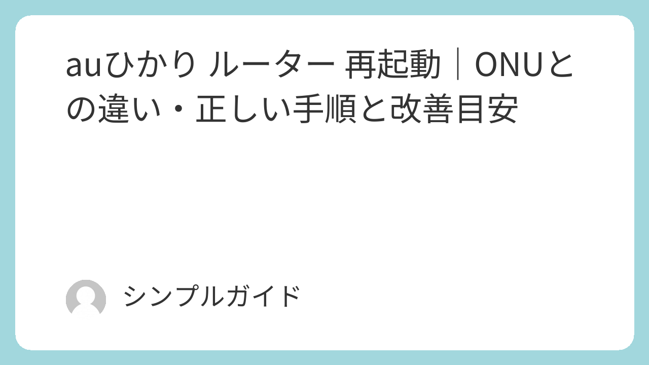 auひかり ルーター 再起動|ONUとの違い・正しい手順と改善目安