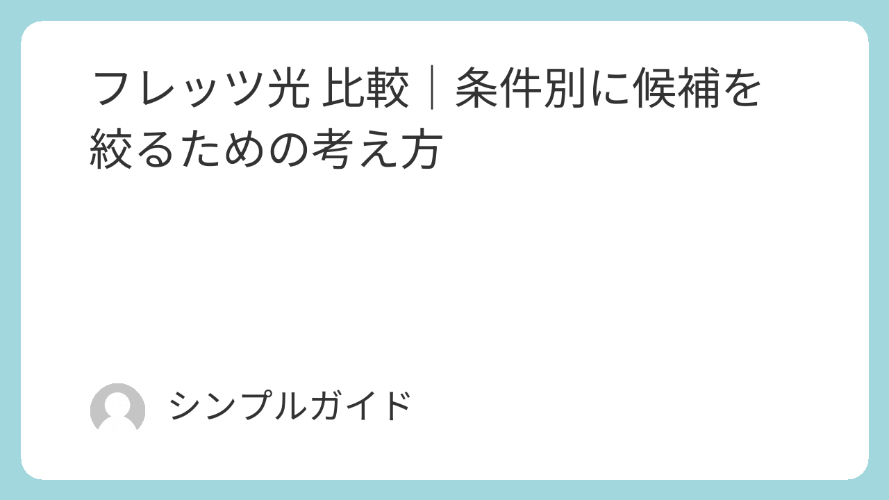 フレッツ光の比較は、複雑な情報を「自分に関係のあるもの」だけに削ぎ落としていく作業です。料金、速度、セット割といった軸で見直せば、検討すべきプロバイダやプランは自然と絞られてきたはずです。