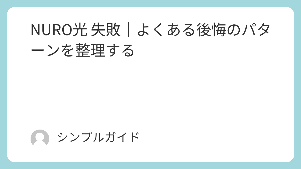 ただし、失敗事例を見て「NURO光はダメだ」と断定するのも、また早計です。本記事では、よくある失敗の原因を構造的に整理し、自分ならどう回避すべきかを考える材料を提供します。