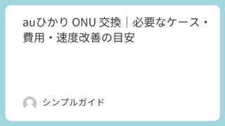 ① 結論auひかりのONU(光回線終端装置)は、通信の安定や速度に影響します。速度が出ない・接続が不安定といった場合、ONU交換で改善するケースがあります。ONUは回線と家庭内ネットワークをつなぐ重要機器ただし、交換すれば必ず速度が上がるわ...