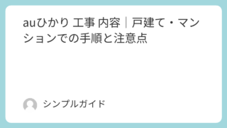 ① 結論auひかりの工事は、光回線を家庭に引き込むための必須作業で、戸建て・マンションで手順や内容が異なります。戸建てでは電柱または地中から光ケーブルを宅内に引き込む工事が必要マンションでは建物内設備を活用するため比較的短時間で完了工事内容...